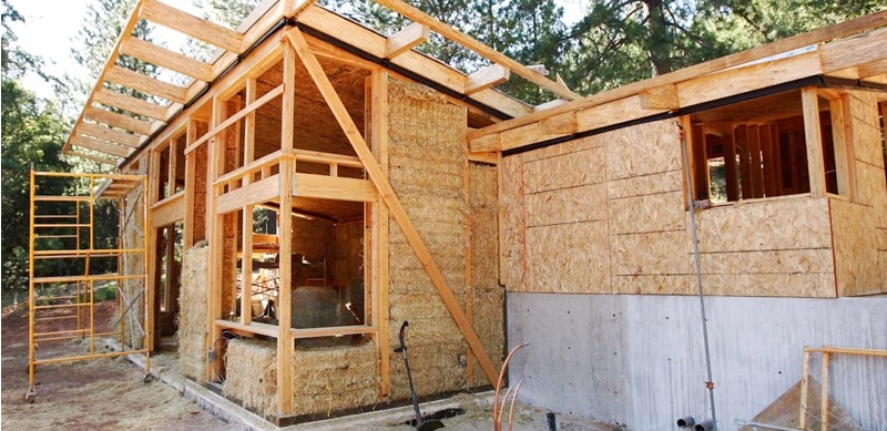 De esta forma se aprovechan recursos como la madera, las piedras o incluso la paja que se puede generar en las inmediaciones. En la imagen se muestra la construcción de una vivienda donde se utilizan como aislamiento maderas de la localidad y la paja de los campos de alrededor. Materiales baratos y muy eficientes para conseguir reducir el consumo energético.