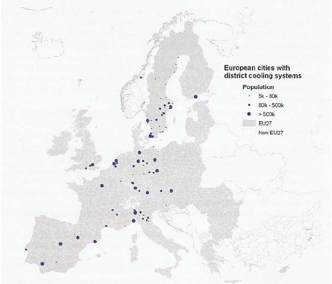Fuente: Base de datos DHC de la Universidad de Halmstad. Ciudades Europeas de más de 5000 habitantes con sistemas de Enfriamiento colectivo.